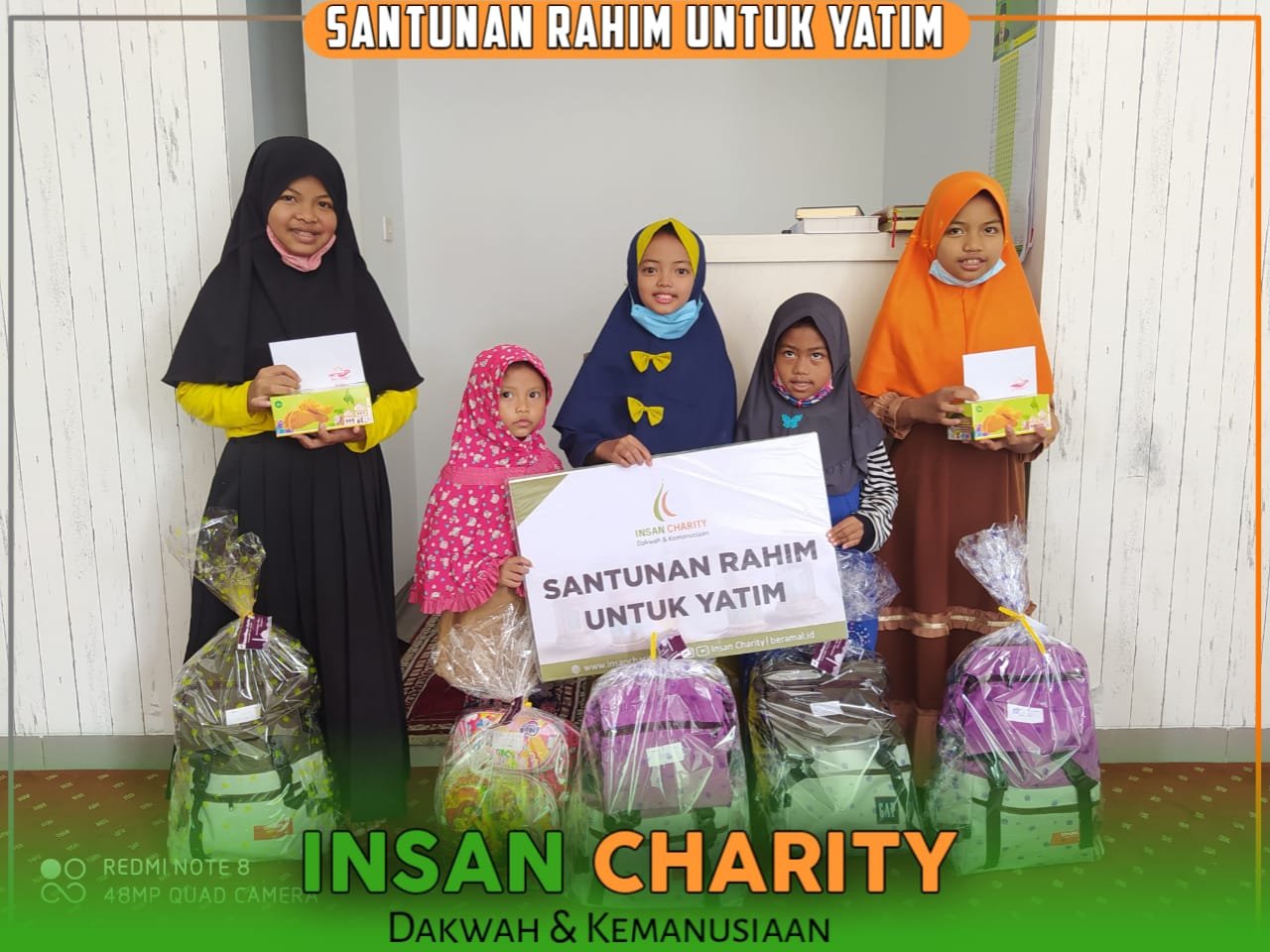 Di foto itu, anak-anak yatim terlihat seperti merayakan momen kecil yang jarang mereka dapatkan: